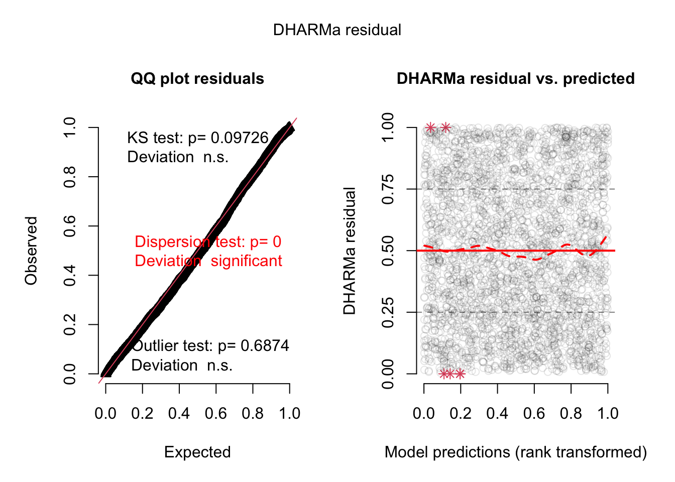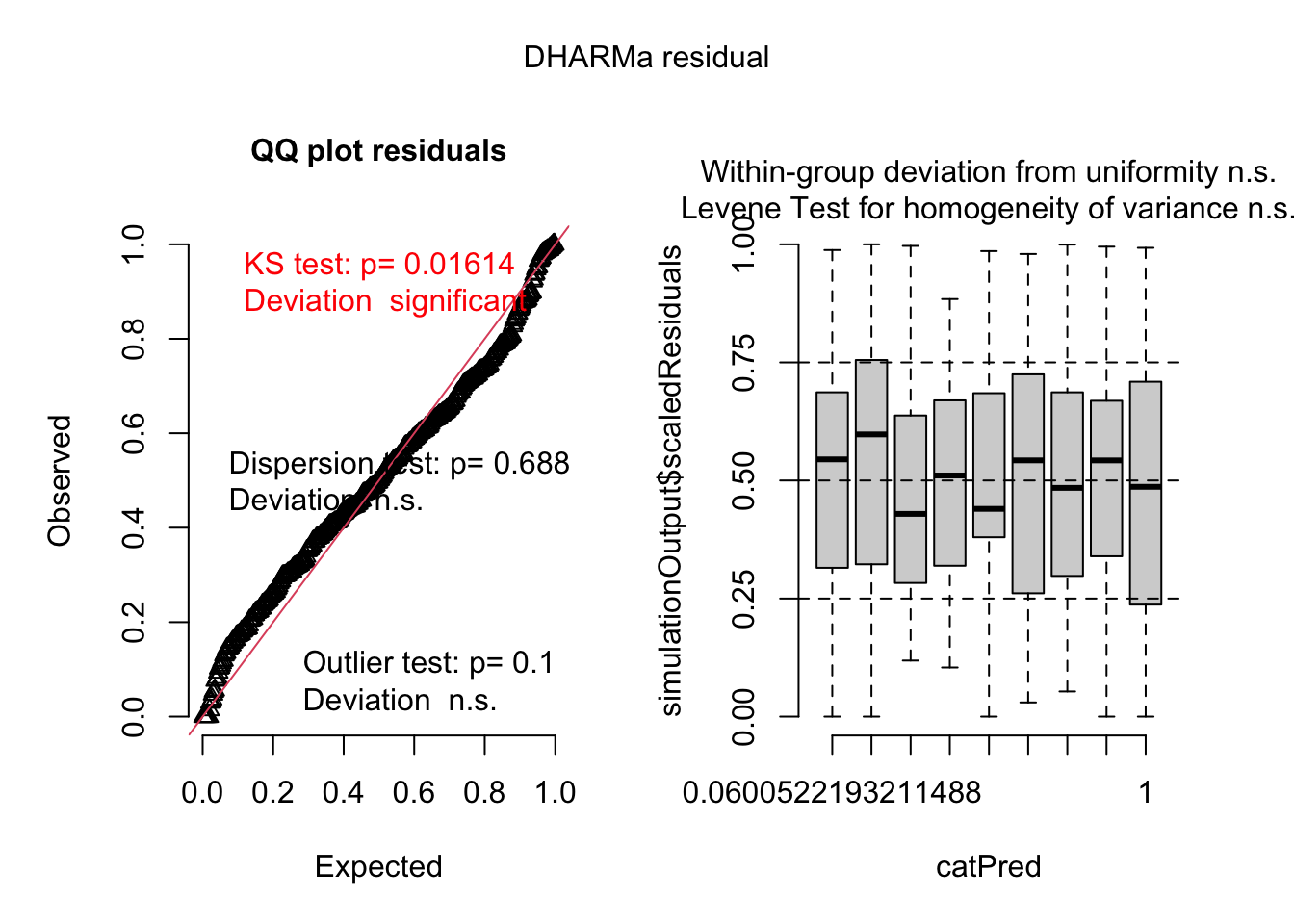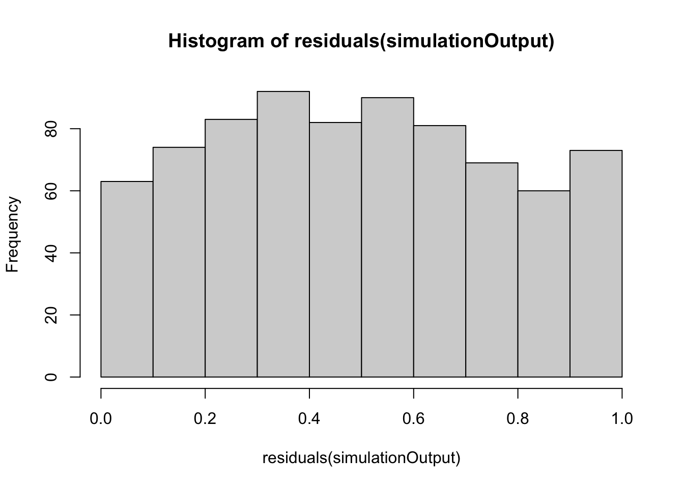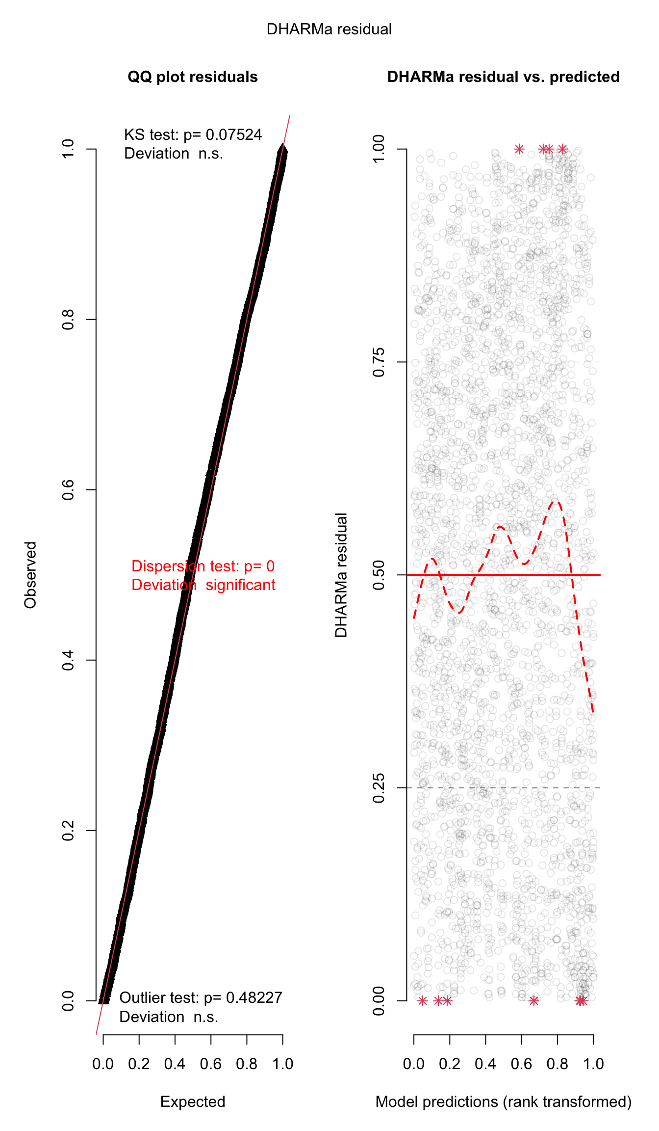 simulationOutput <- simulateResiduals(fittedModel = p2.mod1, plot = FALSE)