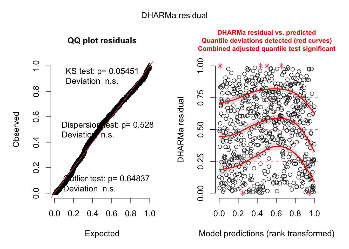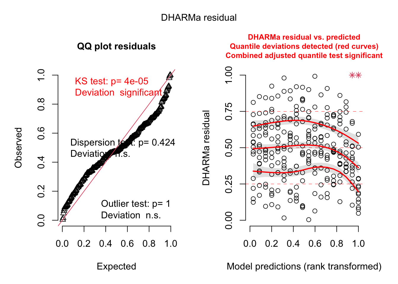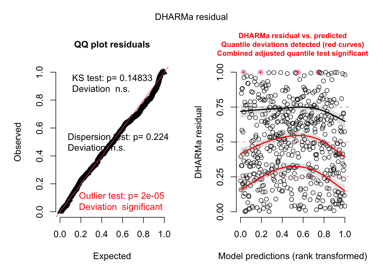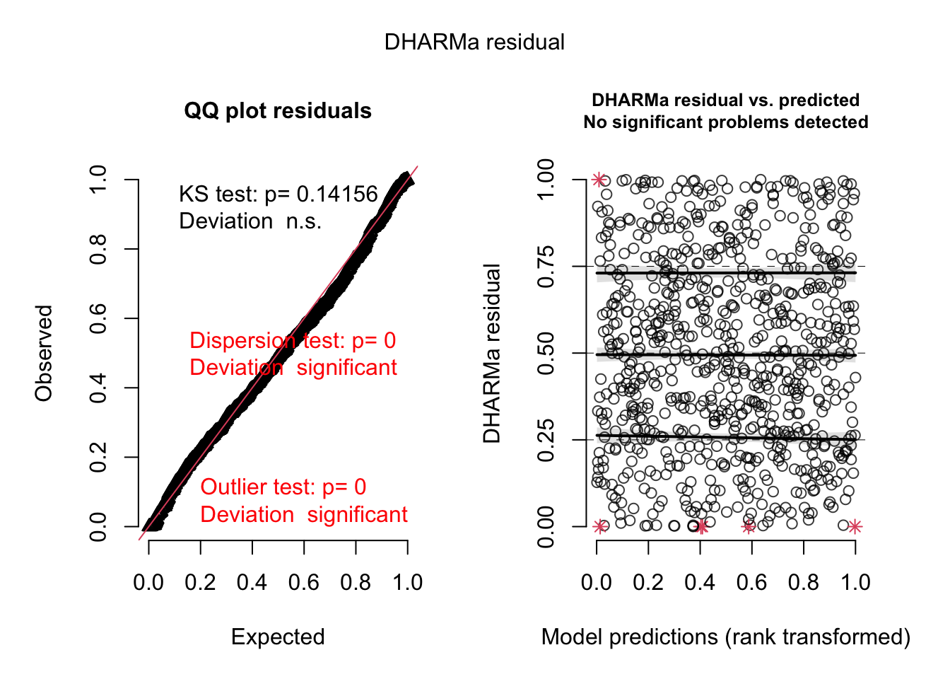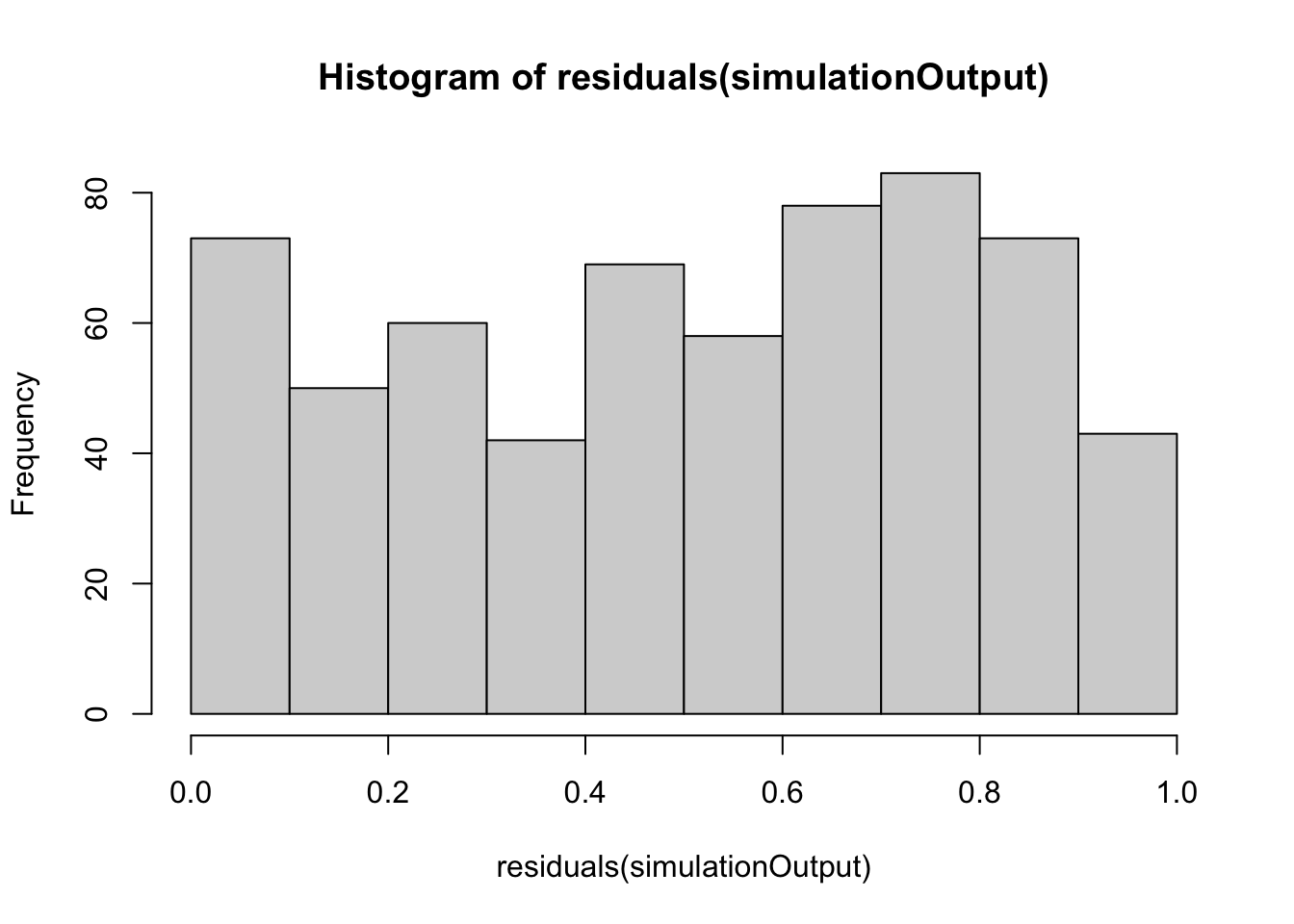 simulationOutput <- simulateResiduals(fittedModel = p2.mod1, plot = FALSE)