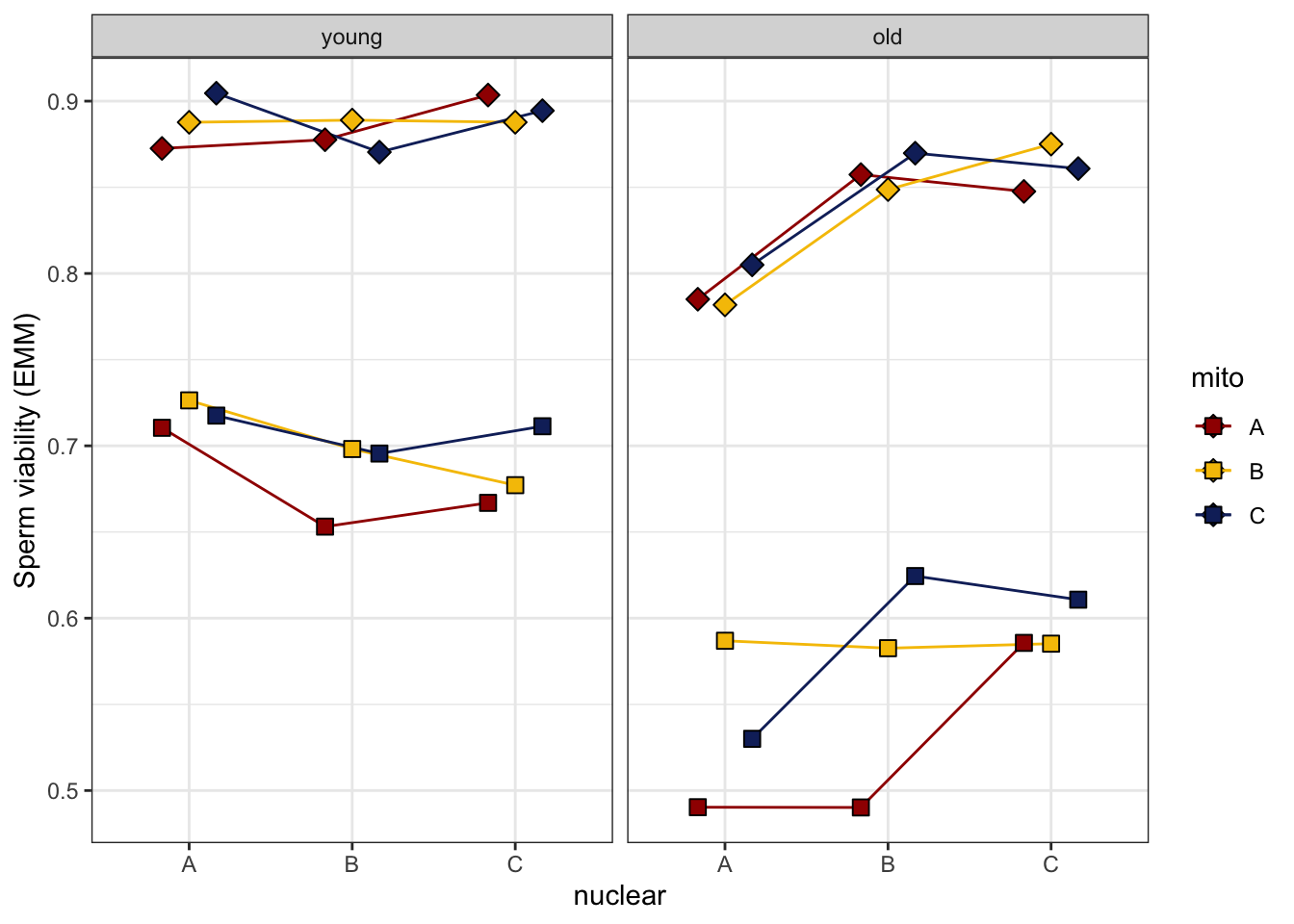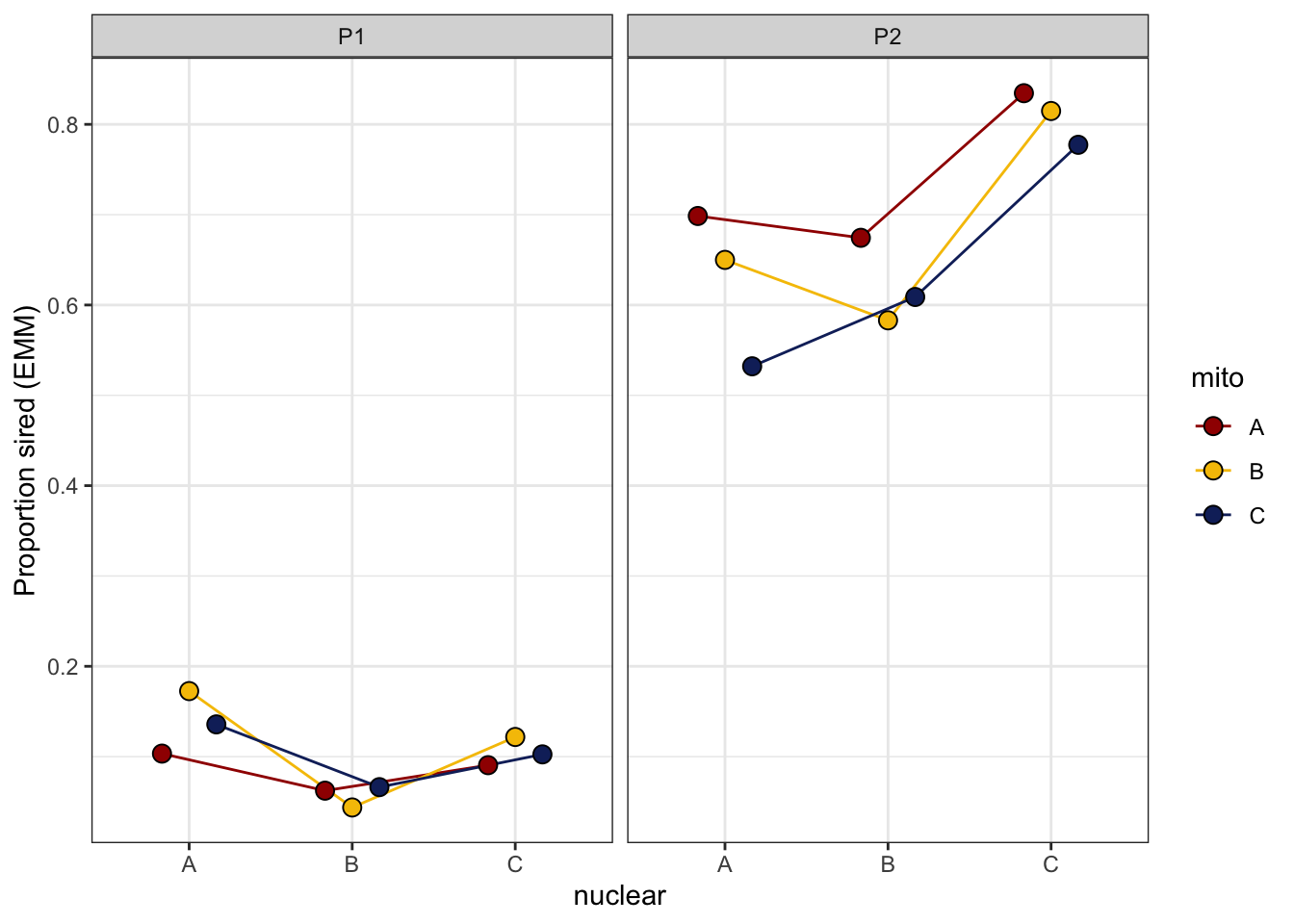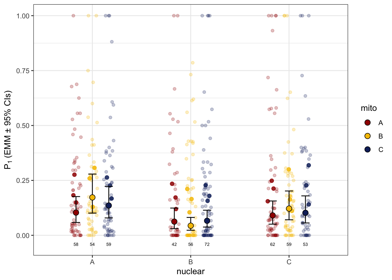 pdat <- bind_rows(emmeans(p1.mod1, ~ mito * nuclear) %>% as_tibble() %>% mutate(met = "P1"),